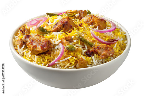 chicken, rice, onion, pepper, food, dish, bowl, meal, spicey, indian, cookery, yellow, white, garnish