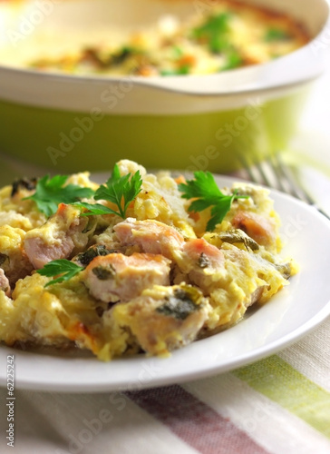 casserole, chicken, meat, breast, cauliflower, cream, diary, food, cookery, cooking, fresh, parsley, kitchen, domestic, homemade, leaf, green, baked, gold, appetising, colours, healthy, health, culinary, vegetable, prepared, cut, meal, dish, eat, plate, diet