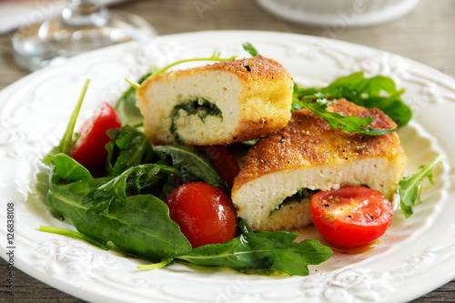 dinner, vegetable, tomatoes, cutlet, meat, food, lettuce, arugula, meal, closeup, chicken, crispy, delicious, sharpened, cooking, bar-b-q, colourful, tomatoes, poultry, baked, pepper, green, herb, salad