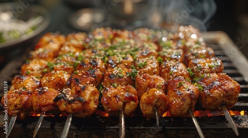 Chicken Kebabs on Grill, Close-up