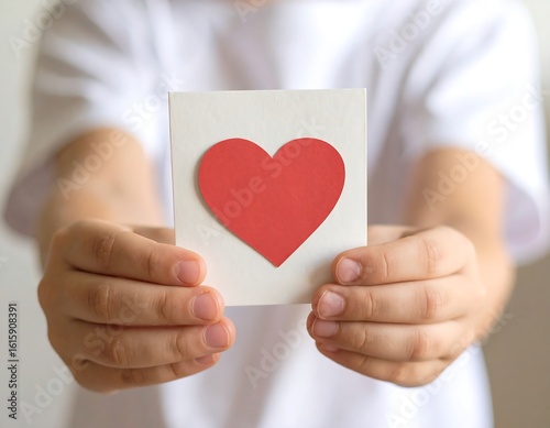 children, hand, card, nubes, red, white, paper, gift, love, present, holding, giving, showing, simple, sweet, cute, tender, care, affection, message, emotion, gesture, offering, display, closeup, childhood, warm, positive, pure