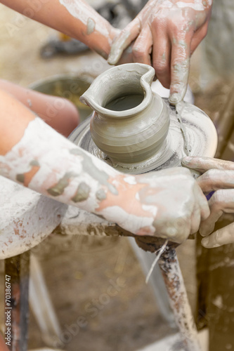 hand, children, learning, help, making, clay, teaching, adult, potter, play, wheel, art, craft, team, mud, teamwork, skill, 2, human, form, earthenware, brown, culture, finger, guide, instructor, people, traditional, spinning, closeup, creativity, guidance, latvia, activity, molding, turning, trainee, school, outdoors, jug, assistance, education, part, work, ceramic, pottery