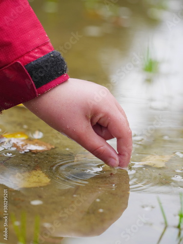 child touching water surface