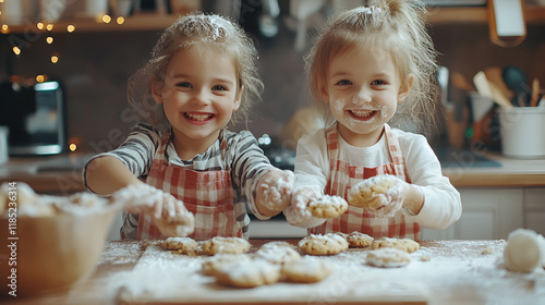 children baking cookies in the kitchen with smiley face.ai generative