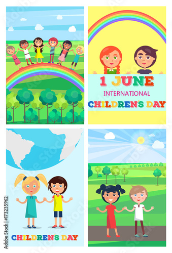 Children s Special Day Colorful Poster of Four