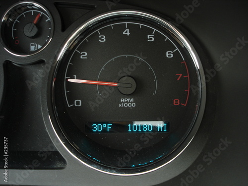 dashboard, gauge, rpm, tacho, green, white, black, red, handle, thermometer, low, fahrenheit, degree, car, automobile, transport, measure