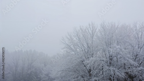 Chilly outdoor scene with frosty trees and blue sky