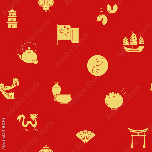 china, seamless, pattern, chinese, vector, background, east, flag, national, flat, tradition, culture, symbol, signs, yin, yang, porcelain, wall, great, dragon, red, yellow, pagoda, lantern, bamboo, hat, nation, arch, fan, fortune, cookie, tea, rice, noodle, food, traditional, asian, eastern, oriental, asia, art, decor, ancient, cookery, architecture, gate, ship, wallpaper, repeating