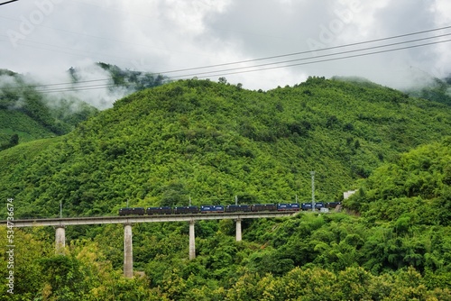 China–Laos railway, Boten–Vientiane railway, bridge in Lao Nature on the way to the north.Beautiful mountain and forest. High quality photo