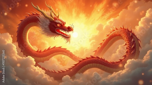 dragon, spiral, gold, burst, art, illustration, fantasy, chinese culture, legend, mythology, gold, design, image, graphic, spiraling, vibrant, colours, powerful, majestic