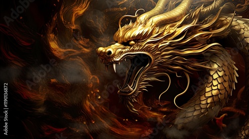 Chinese new year dragon and Happy new year Golden traditional chinese dragon background