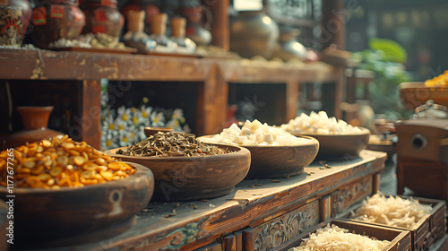 Chinese traditional herbal and spices on the shelf