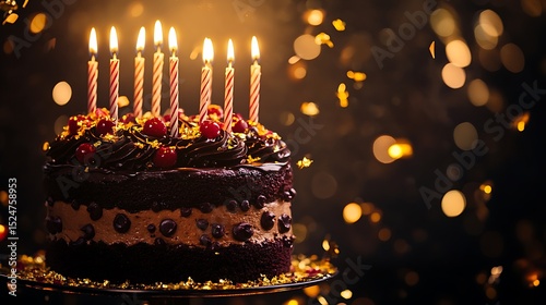 Chocolate Birthday Cake with Candles and Festive Sparkles