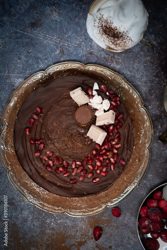 Chocolate cranberry tart and elegant tea set