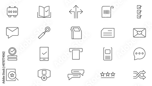 Choice line icon set. Confirm, approved, check list, warranty, options, preference, choice and decision outline icon collection. UI thin outline icons