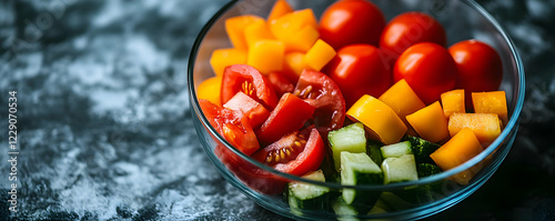 salad, vegetable, tomatoes, pepper, cucumber, bowl, healthy, food, diet, cooking, fresh, receipe, ingredient, delicious, vitamin, nourishment, eating, lunch, dinner, snack, summer, spring, colourful, vibrant, organic, crunchy, tasty, texture, rustic, style, closeup, photo, background, dark, table, clean, bright, green, red, yellow, plant, dish