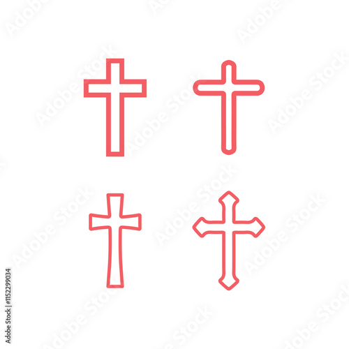 Christian cross vector symbol flat style. Religion cross icons set vector illustration.