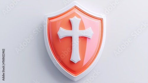 Christian Faith Symbol Orange Shield with White Cross 3D Render