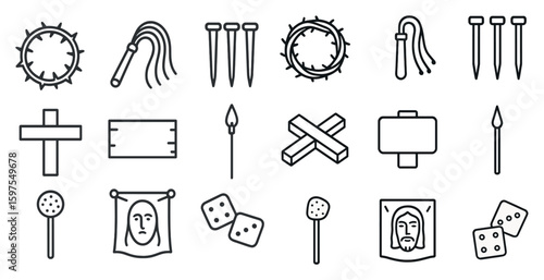 Christian symbols outline icons set – linear, religious, faith imagery collection