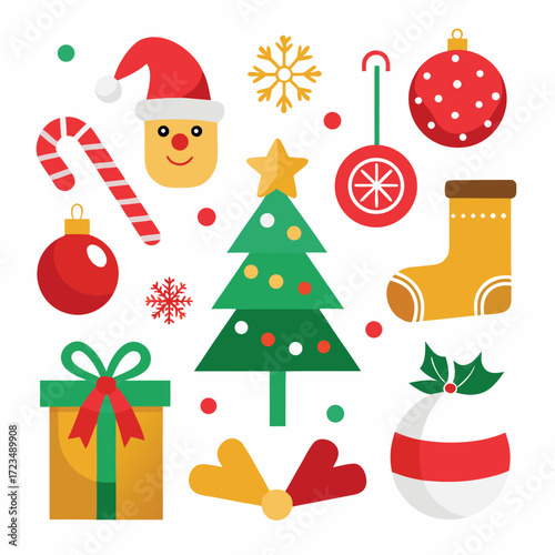 christmas, santa, claus, tree, ornament, bauble, decoration, candy, cane, gift, box, present, stocking, hat, face, smile, joy, happy, celebration, holiday, winter, season, festive, greeting, card, design, element, set, collection, flat, graphic, new, year, december, christmas, christmas, merry, spirit, tradition, cute, cartoon, character, symbol