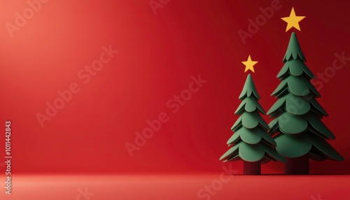 Christmas background with 3d render tree pine on red background. Christmas banner, Holiday and festival celebration concept.
