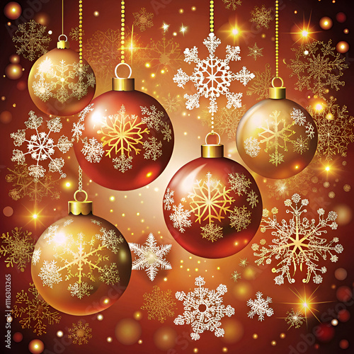 christmas, holiday, decoration, ball, christmas, winter, snow, celebration, snowflake, vector, ornament, card, season, bauble, illustration, new, year, design, tree, december, gold, merry, red, new year, sphere