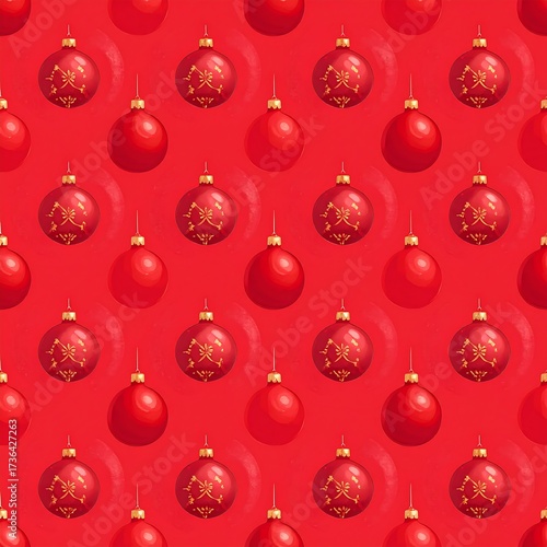 christmas, bauble, red, gold, pattern, design, ornament, festive, decoration, ball, hanging, image, seamless, repeat, bright, vibrant, holiday, winter, three-dimensional, graphic, illustration