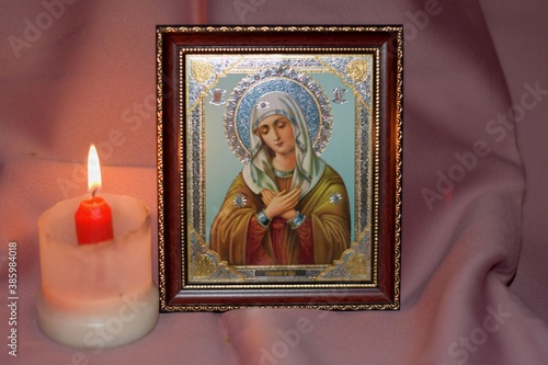 christmas candle and the image of the Saint in the Church