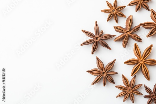 Christmas concept of branches with anise on white background. Flat lay, top view with generative ai