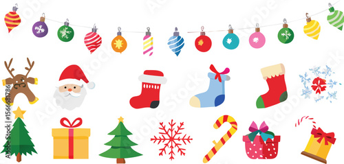 christmas, icon, ornament, santa, reindeer, greeting, symbol, snowflake, project, clip art, element, website, holiday, festive, graphic, merry, image, stocking, gift, decoration, december, happy, art, claus, cute, card, holiday, design, celebration, colourful, cane, candy, tree, winter