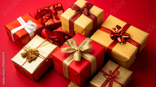 gift box, christmas gift, christmas background, new year, red background, merry christmas, present, group, 2026, winter, light, 2025, gift, holiday, festive, december, christmas, card, red, package, ribbon, decoration, celebration