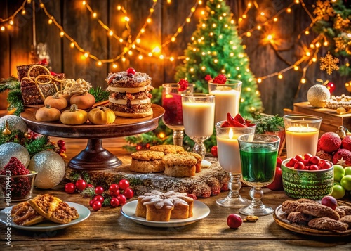 christmas, holiday, food photography, decoration, dessert, drink, celebration, winter, holiday, cheer, joy, gathering, party, ambience, delicious, traditional, sweet, baked goods, cookie, fruit, cheese, charcuterie, appetiser, table setting, buffet, illuminated, photo, culinary, event, meal, winter landscape, celebration, holiday spirit