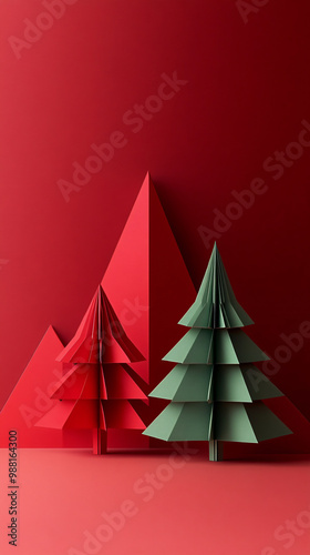 Christmas origami style Christmas tree poster background