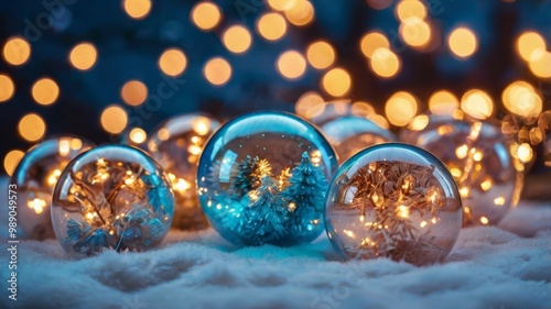 Christmas ornaments with fairy lights glowing in the dark