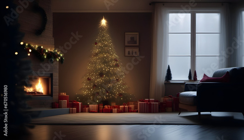 christmas, tree, room, interior, christmas, decoration, holiday, home, christmas tree, gift, celebration, winter, house, light, present, december, decoration, sofa, gift, fireplace, light, fire, present, night, window, santa, festive