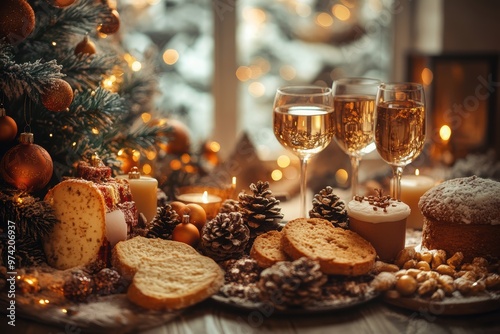glowing, tradition, seasonal, festive, party, elegant, christmas lights, comfort, inviting, christmas, candle, december, cosy, family, christmas tree, cake, treat, holiday, celebration, cookie, home decor, christmas, sparkling wine, table setting, pine cone, food, winter, dessert, christmas dinner, christmas spirit, set table