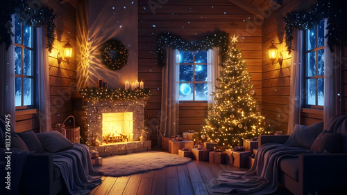 christmas, tree, room, christmas tree, decoration, light, celebration, indoor, interior, home, house, living, chair, light