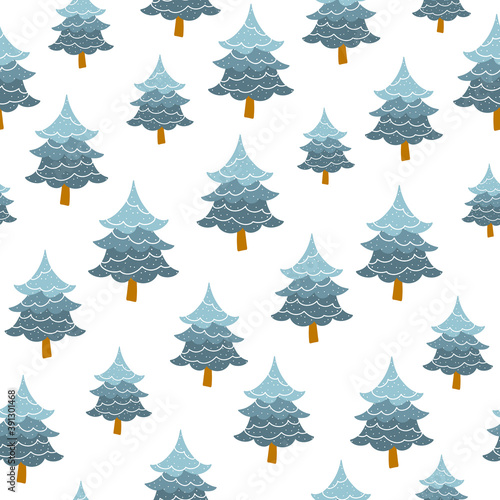 Christmas tree seamless pattern. Vector illustration in a childish hand-drawn Scandinavian style. Fir-tree forest. The pastel palette is ideal for printing packaging, fabrics, textiles.