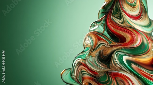 christmas, tree, decoration, holiday, festive, season, celebration, symbol, ornament, tangle, distorted, wave, pattern, shape, red, green, gold, colours, bright, vibrant, cheerful, background, design, shiny, glistering, glow, traditional, sparkle, hanging, bauble, swirl, whimsical, elegant, seasonal, beautiful, decor, merry, christmas, magical, glowing, sparkly, abstract, modern, joyful, christmas