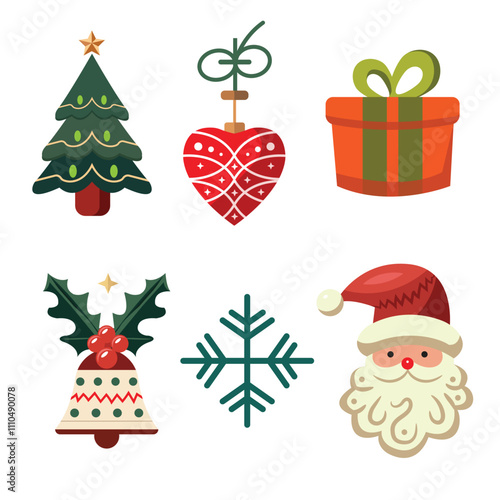 christmas, tree, set, holiday, snowman, christmas, vector, winter, decoration, gift, icon, illustration, santa, celebration, snow, star, new, symbol, ornament, year, cartoon, icon, ball, bell, snowflake