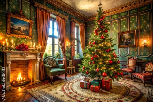 christmas, tree, fireplace, decoration, room, interior, winter, light, fire, celebration, decoration, architecture, night, house