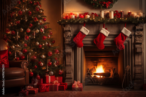 christmas, tree, fireplace, room, christmas tree, home, holiday, decoration, interior, christmas, light, fire, winter, decoration, present, night, celebration, family, santa, gift, house, ornament, window, living room, holiday