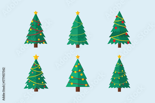 christmas, tree, holiday, winter, decoration, ornament, light, festive, seasonal, evergreen, conifer, pine, spruce, fir, celebration, season, gift, greeting, illustration, graphic, vector, symbol, icon, design, element, group, set, collection, family, party