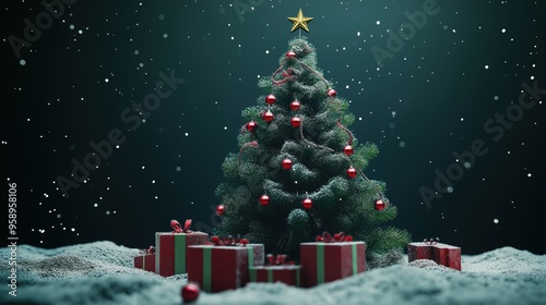 christmas, tree, holiday, decoration, christmas, christmas tree, winter, snow, gift, celebration, star, fir, vector, year, illustration, new, season, ball, present, new year, design, december, ornament, green, merry