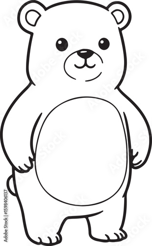 Chubby bear character standing upright, outlined in thick black lines,