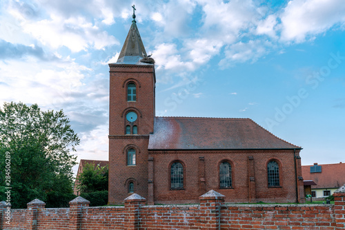church, nesting, stork, bird, blue, brandenburg, breeding, brick, bright, building, christian, clear, clock-tower, cloud, cross, east, german, high, historical, history, interest, nest, old, picturesque, protected, quaint, red, roof, rural, scenic, sight, sightseeing, sitting, sky, sky, stork, summer, sunny, sunshine, tower, 2, upright, view, village, high-coloured, wall, walled