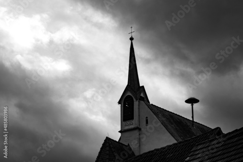 church steeple at sunset