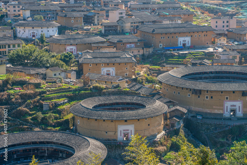 Chuxi village, an ancient village with a lot of Tulous in Fujian province, China.