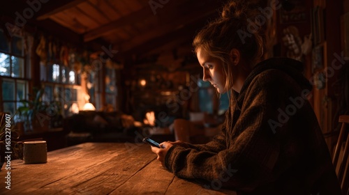 cabin, smartphone, wood, table, cosy, peaceful, unplug, mindfulness, relaxation, solitude, nature, simplicity, warmth, calmness, lifestyle, technology, balance, connection, retreat, serenity, minimalism, personal, sharpened, comfort, escape, environment, harmony, modern, design, soft, light, rustic, emotional, calming, inviting, quiet, stillness, empathy, awareness, rejuvenation, home, ambient, earth-tone, sustainable, organic