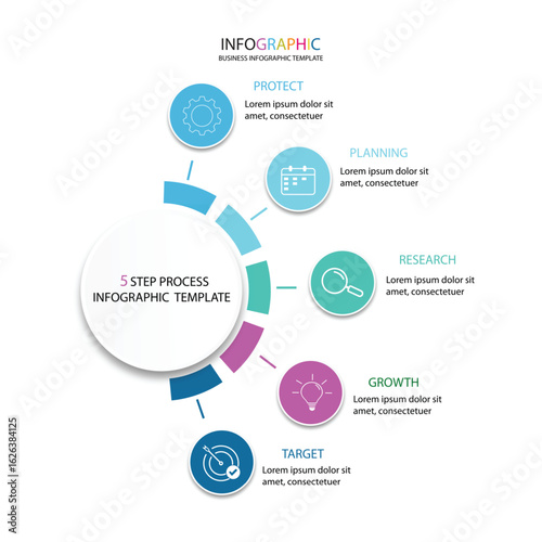 circle infographic template, 5 step infographic template, business infographic, circle infographic, timeline infographic, whit 5 step or option,